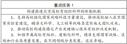 坚持“四个面向”,坚持目标导向和自由探索“两条腿走路”,把世界科技前沿同国家重大战略需求和经济社会发展目标结合起来,将科学家研究兴趣和学术发展同国家需求结合起来,凝练基础研究关键科学问题,强化重大原创研究和前沿交叉研究。充分发挥高水平研究型大学基础研究主力军作用,有组织推进战略导向的体系化基础研究、前沿导向的探索性基础研究;支持高水平特色型大学发挥学科特色优势,突出重点领域方向,有组织推进前沿导向的探索性基础研究、市场导向的应用性基础研究;支持应用型大学发挥实践应用创新特长,有组织推进市场导向的应用性基础研究,各尽其能、各显所长,解决一批推动国家和北京经济社会发展的重大科学问题。