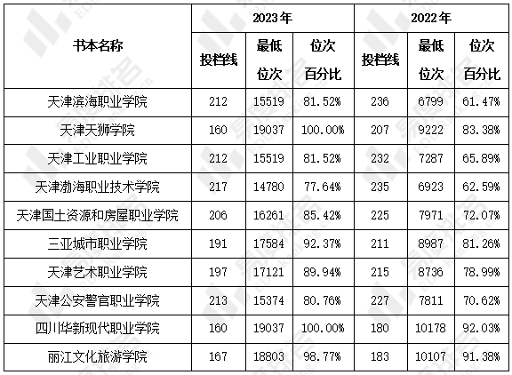 表 1 2022-2023年投档位次百分比下降较多的院校投档信息