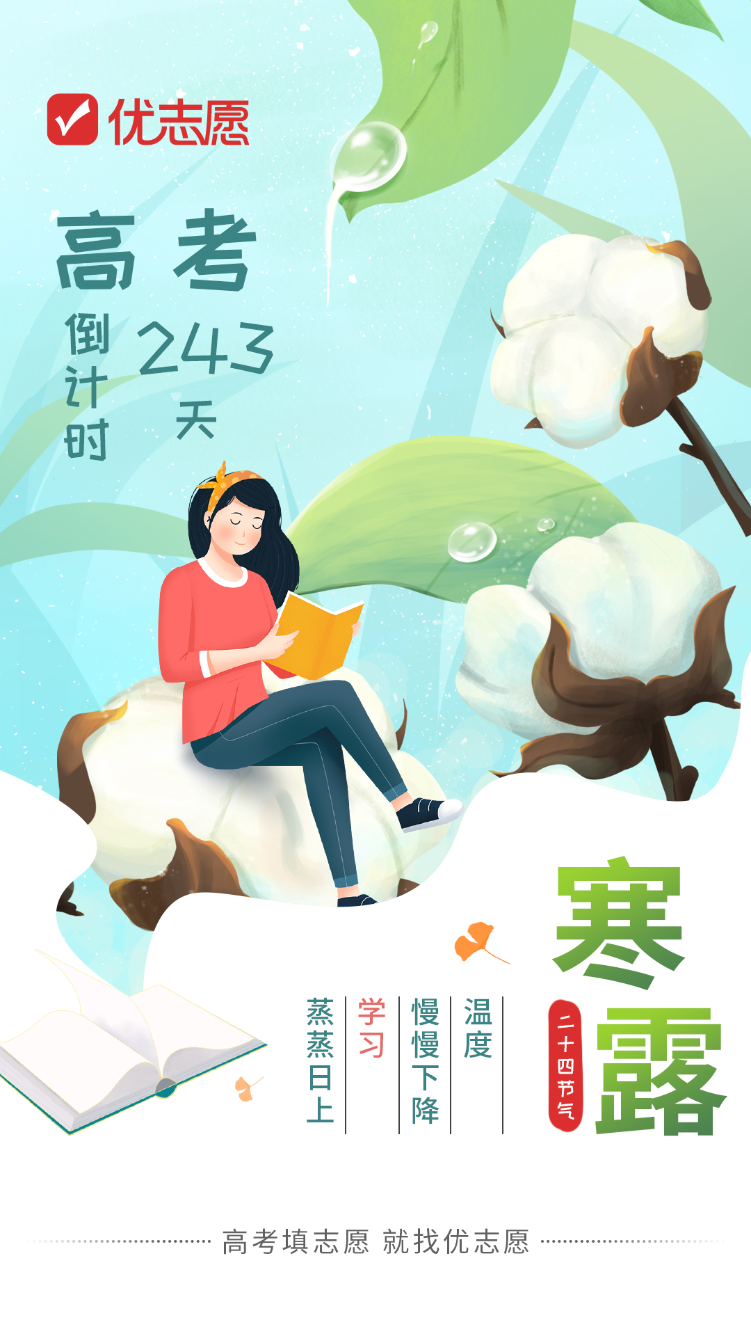 每一滴露水的微光,都能折射出闪耀锋芒;每一个学子的梦想,都可撑起不凡的人生。今日寒露,宜读书!