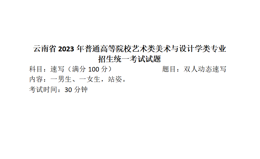 2023云南美术类专业统考试题(速写)