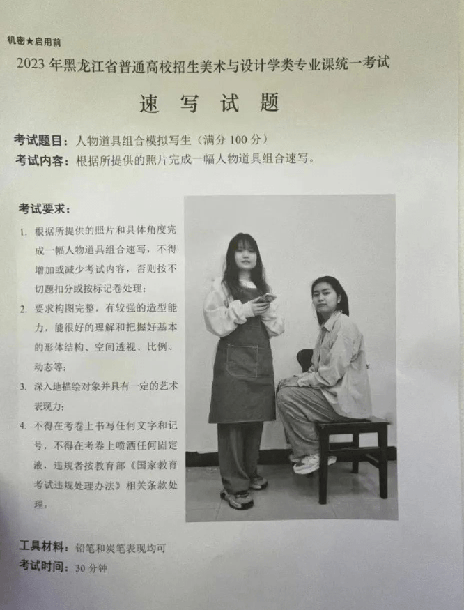 2023黑龙江美术类专业统考试题(速写)
