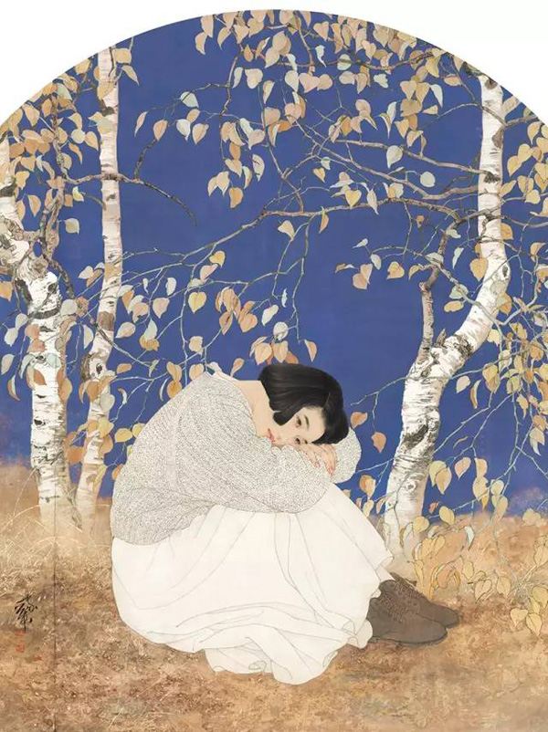 速写题目: 根据图像按要求完成命题创作考试题目:根据何家英老师的作品《秋冥》画一幅创作速写,最少画2个人。两人穿着运动服、拿着相机、背着包的女性,以春天为主题创作,要求上半部分圆形构图。考试时间: (2小时)120分钟