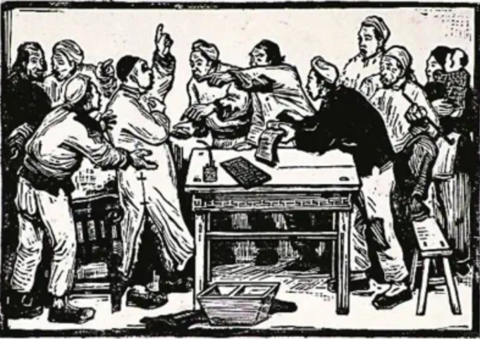 考试题目:根据版画作品《减租会》完成一幅题为《公交车站》的速写创作