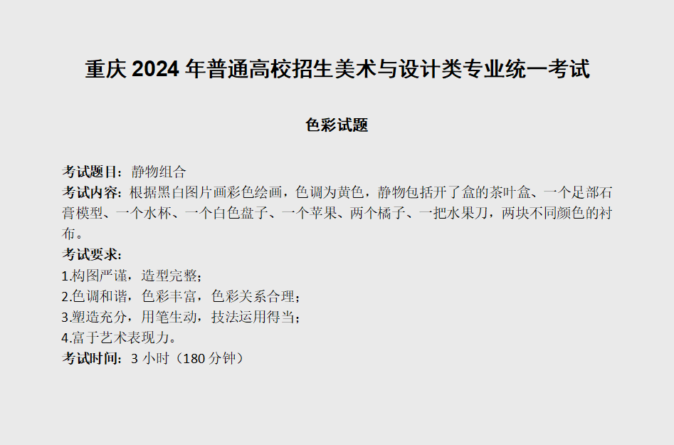 重庆2024年美术类专业统考/联考考题(色彩)