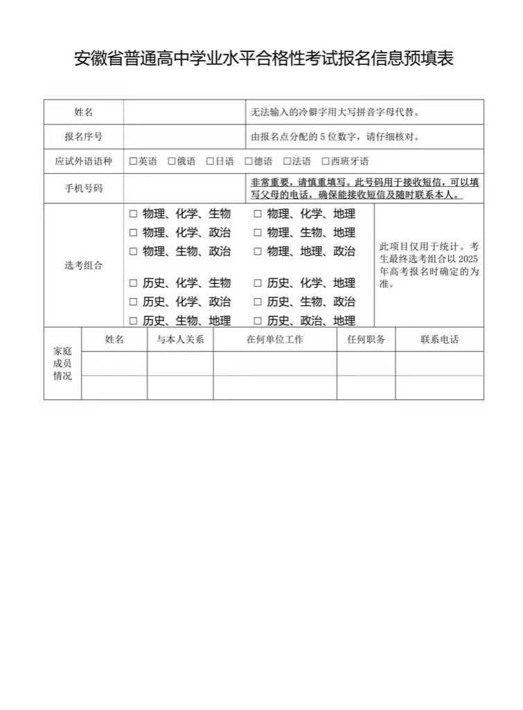 附件:安徽省普通高中学业水平合格性考试报名信息预填表