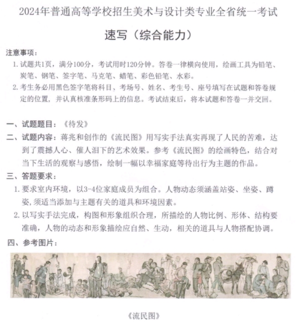 山东2024年美术类专业统考/联考考题(速写)