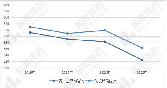 2022年西安交大每年在陕西本科普通批的平均最低位次小幅上升,从前几年的1700多位上升到了1550位左右,西安交大在陕西理科的热度有所上升。