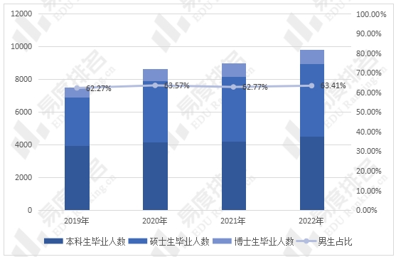 西安交大暂未发布2023年的就业质量报告。西安交大2022年毕业生总数为9823人,较2019年增加约30.42%,其中硕士毕业生增加最多,从2958人增加到了4471人,增幅超50%。西交大毕业生中男生占比超6成,并且该占比还在进一步增加。