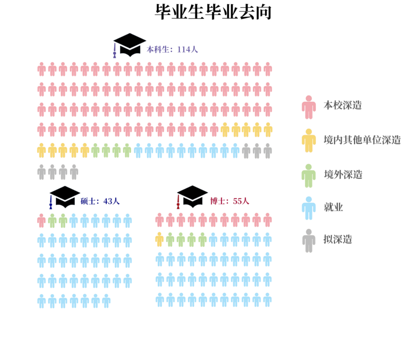 55名博士毕业生中,39人就业,16人深造,选择在国内从事博士后工作的共12人,其中11人继续在