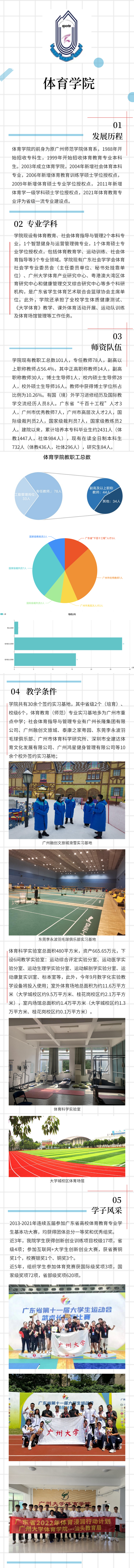 学院介绍 专业介绍 …… 联系方式 招生咨询电话: 39366837 微信公众号: guangdatiyuan14 学院官方网站: http://portal.gzhu.edu.cn/web/pess 选择广大的现在 拥有广大的未来 欢迎报考广州大学体育学院! 期待金秋九月与你相遇!