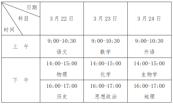 语文、数学、外语考试时长均为90分钟,思想政治、历史、地理、物理、