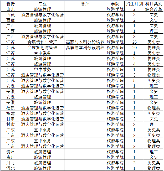 2022年旅游学院招生计划