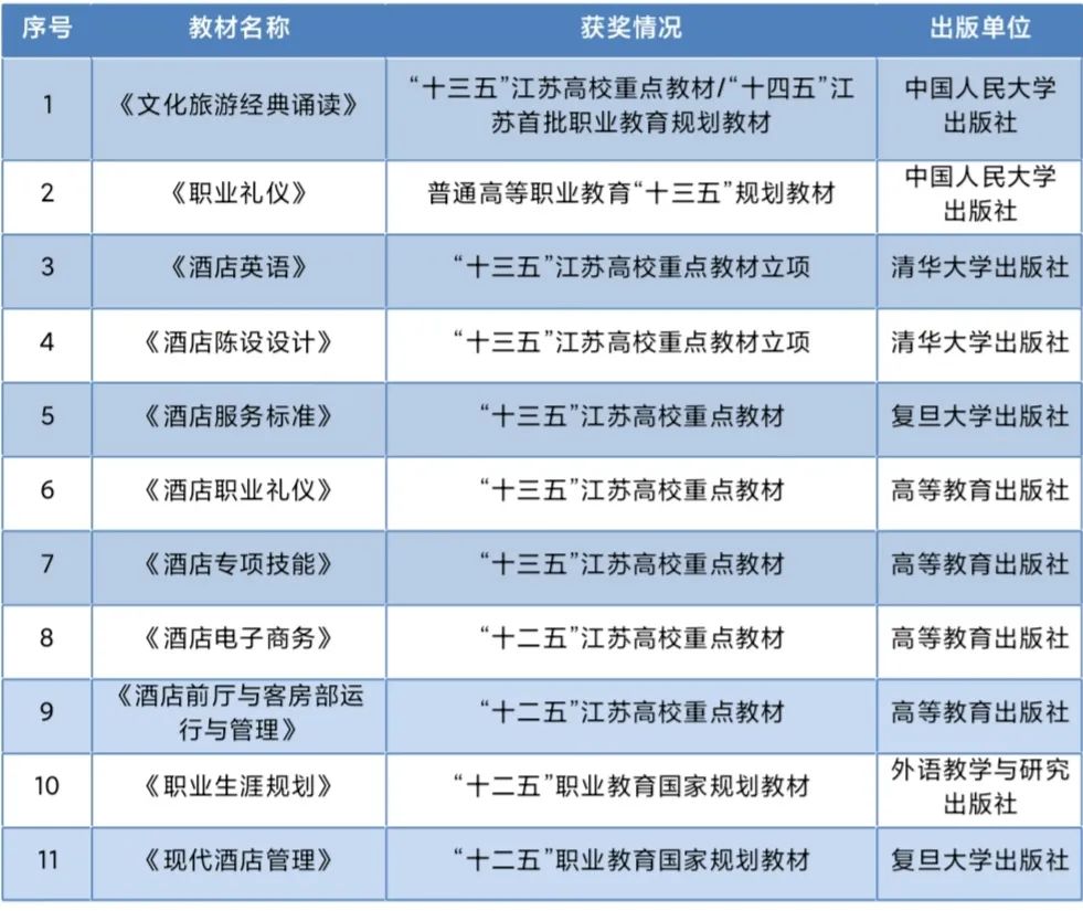 旅游学院重点教材一览表