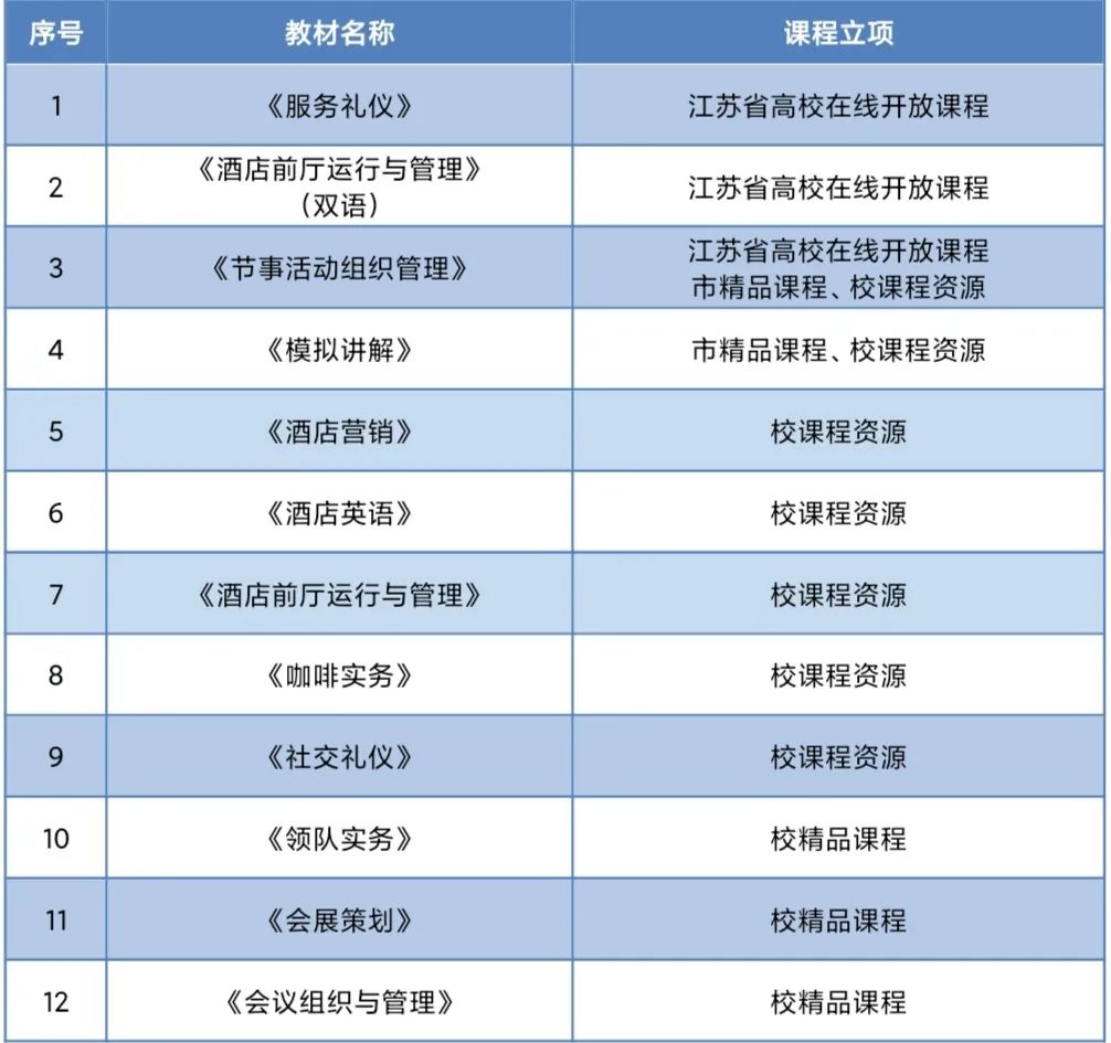 旅游学院课程建设一览表