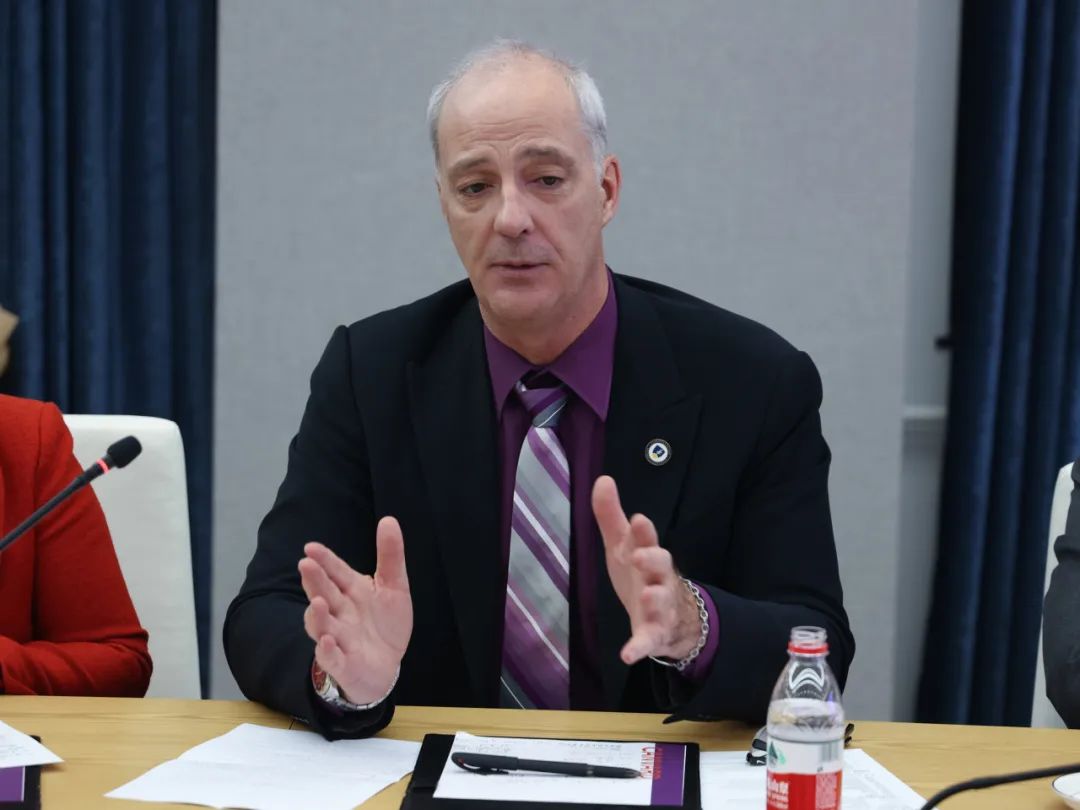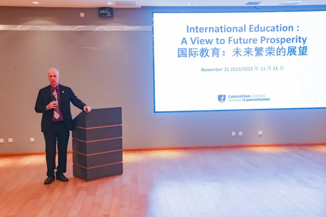 加拿大劳伦森大学副校长Dr. Serge Demers分享了他对劳伦森大学的热爱与自豪,深入介绍了该校的丰富学术资源和国际化成就。在双方进行深入的讨论后,共同期待未来能够开发更多的合作项目,携手推动国际化教育的进一步发展。