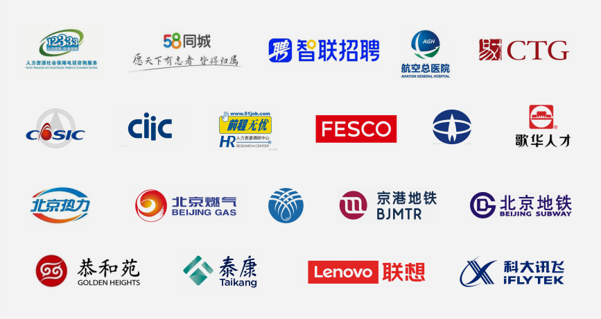 北京外企人力资源服务有限公司(FESCO)、北京中科航天人才服务有限公司、中国国际智力技术合作公司、前程无忧、易才集团、58同城、智联招聘、海淀区人力资源公共服务中心、国才(北京)人力资源服务有限公司等。