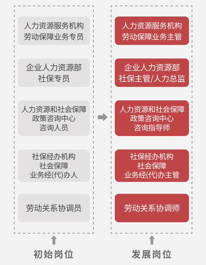 各区劳动人事争议仲裁院的书记员、调解员、仲裁员等岗位、各区劳动执法监察机构的劳动执法、案件调处等岗位、工会系统的劳动关系管理相关岗位、人力资源服务公司及各类企事业单位的人力资源部门相关岗位。