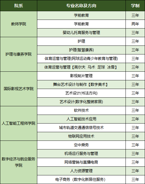 学院秉承“新型、高品位、国际化”的办学理念,坚持“以质量求生存,以特色求发展,以诚信创未来”的办学宗旨。下设教师学院、护理与康养学院、国际影视艺术学院、人工智能工程师学院、数字经济与航空服务学院、国际交流中心、通识中心;已形成“学前教育、康养护理、影视艺术、网络科技、数字经济"专业五大板块,各专业板块突出职业型、国际化的人才培养特色,致力于培养面向新经济、新业态和新技术发展,具有职业能力和工匠精神的高素质专门技术人才。