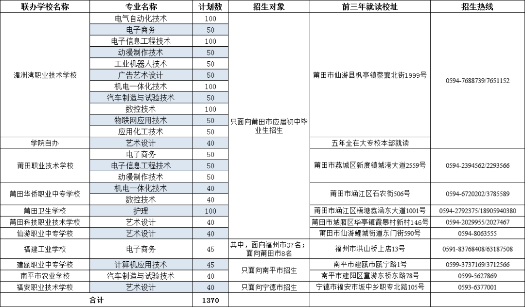 请有意愿报考我院五年制大专的福建省内初三毕业生和家长,具体联系上方表中的各所联办中职校的招生热线电话,欢迎垂询!
