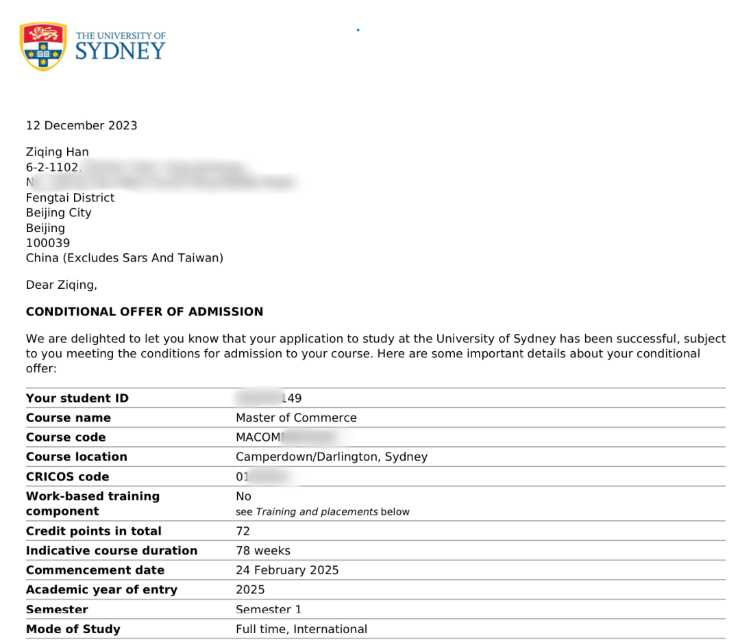 近期在准备英国高校的申请,我深感选择一所合适的大学至关重要,在申请过程中,感谢老师们,时刻帮我关注着申请进度,为我提供了很多宝贵的建议,在他们的帮助下,我顺利拿到了QS排名19位的澳大利亚悉尼大学的录取OFFER。
