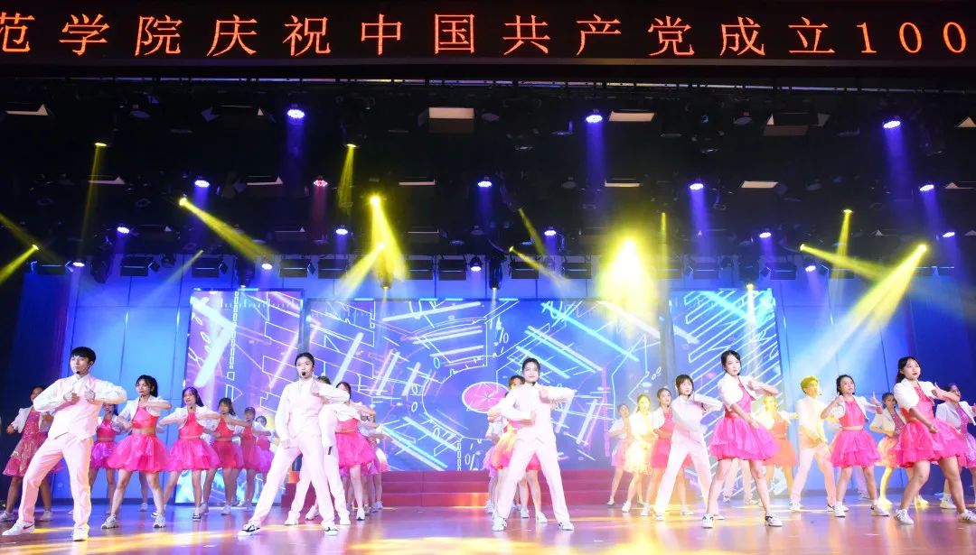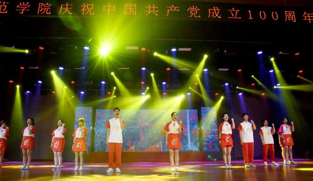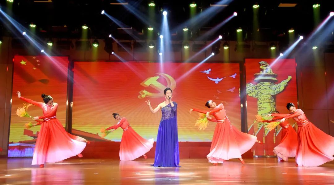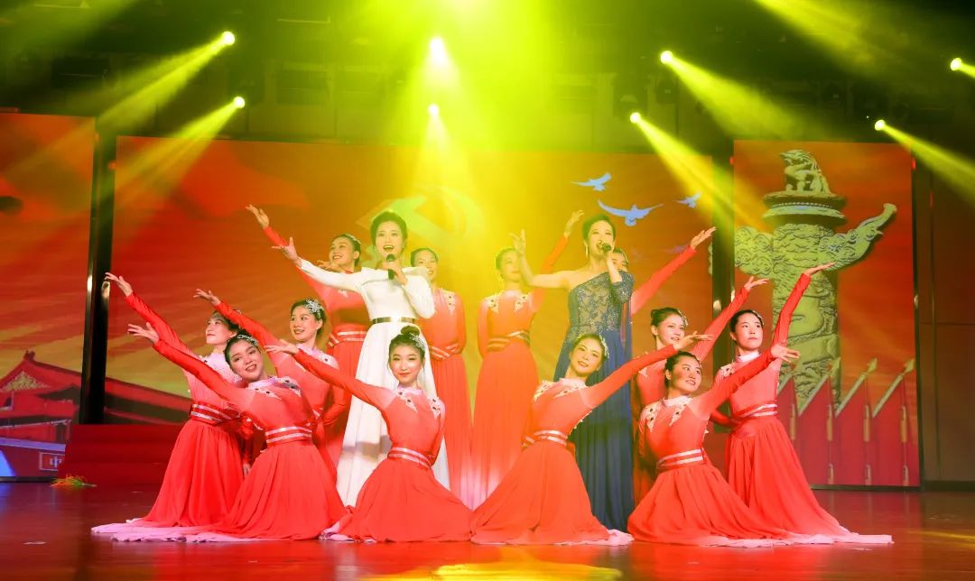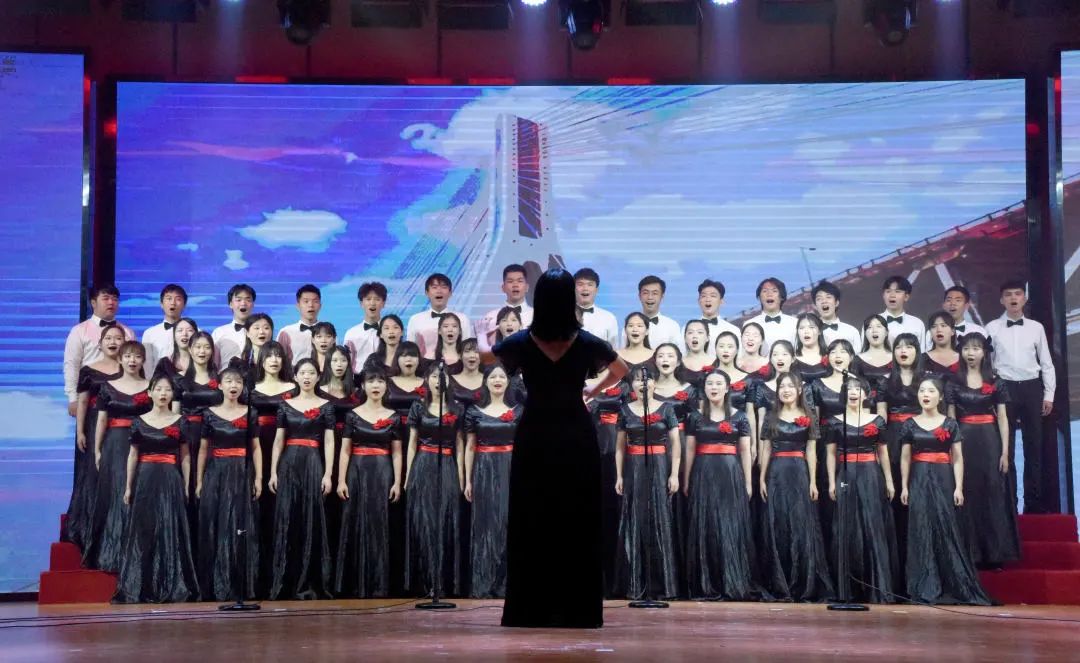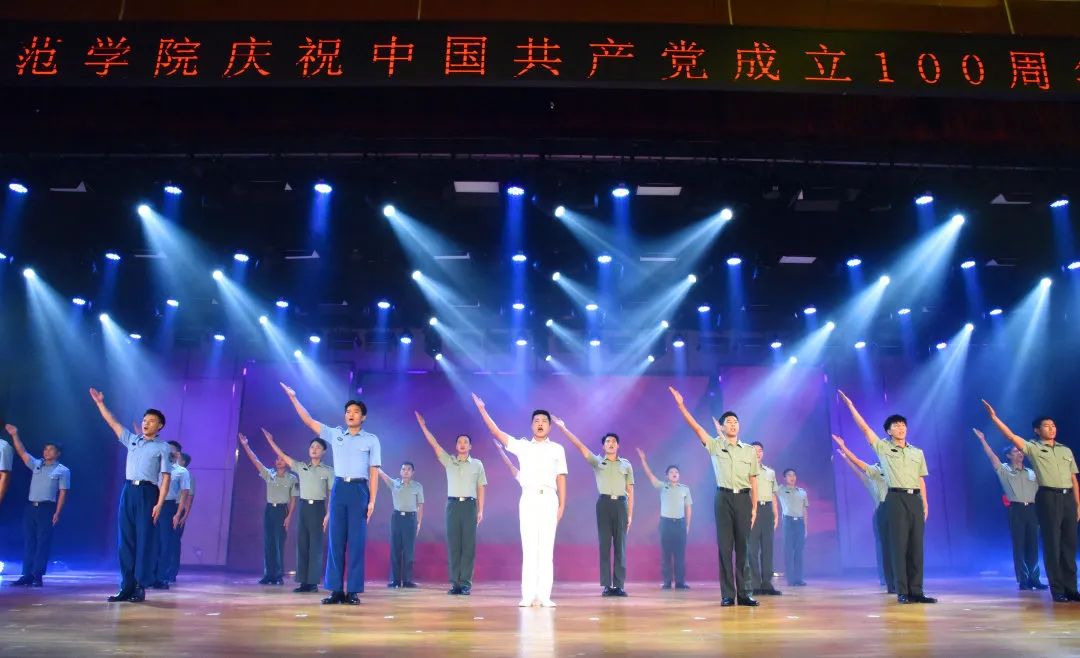 学校大学生艺术团大合唱《前进吧!中国共产党》,赞颂中国共产党带给我们幸福的生活,也向党宣誓:
