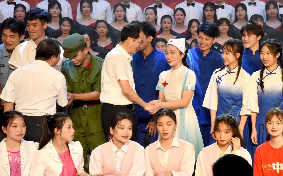 学校大学生艺术团带来的舞蹈《英雄花》,展现的是各党各派各界各军、海内外华夏儿女铸就的钢铁长城,他们用柔弱的身躯撑起抗日民族统一战线的半边天。英雄就像战地上盛开的木棉花,永远都是最鲜艳的。在百年奋斗历程中,中国共产党始终把统一战线摆在重要位置,不断巩固和发展最广泛的统一战线,团结一切可以团结的力量、调动一切可以调动的积极因素,最大限度凝聚起共同奋斗的力量。爱国统一战线是中国共产党团结海内外全体中华儿女实现中华民族伟大复兴的重要法宝。