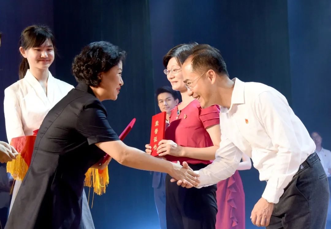 主题党课前,校领导还向获得省委教育工委、省教育厅党组表彰的2名优秀共产党员、2名优秀