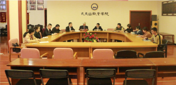 4月18日下午,现代服务系及我院相关合作企业负责人在致知楼一楼会议室召开校企合作专业指导委员会。出席本次会议的有我院林鸿海院长、李万兴副院长、廖俊文科长、刘洋主任和武夷学院专家教授、武夷山悦华酒店、大红袍山庄酒店、莆田希尔顿酒店、尚客优酒店、福建省和谐号
