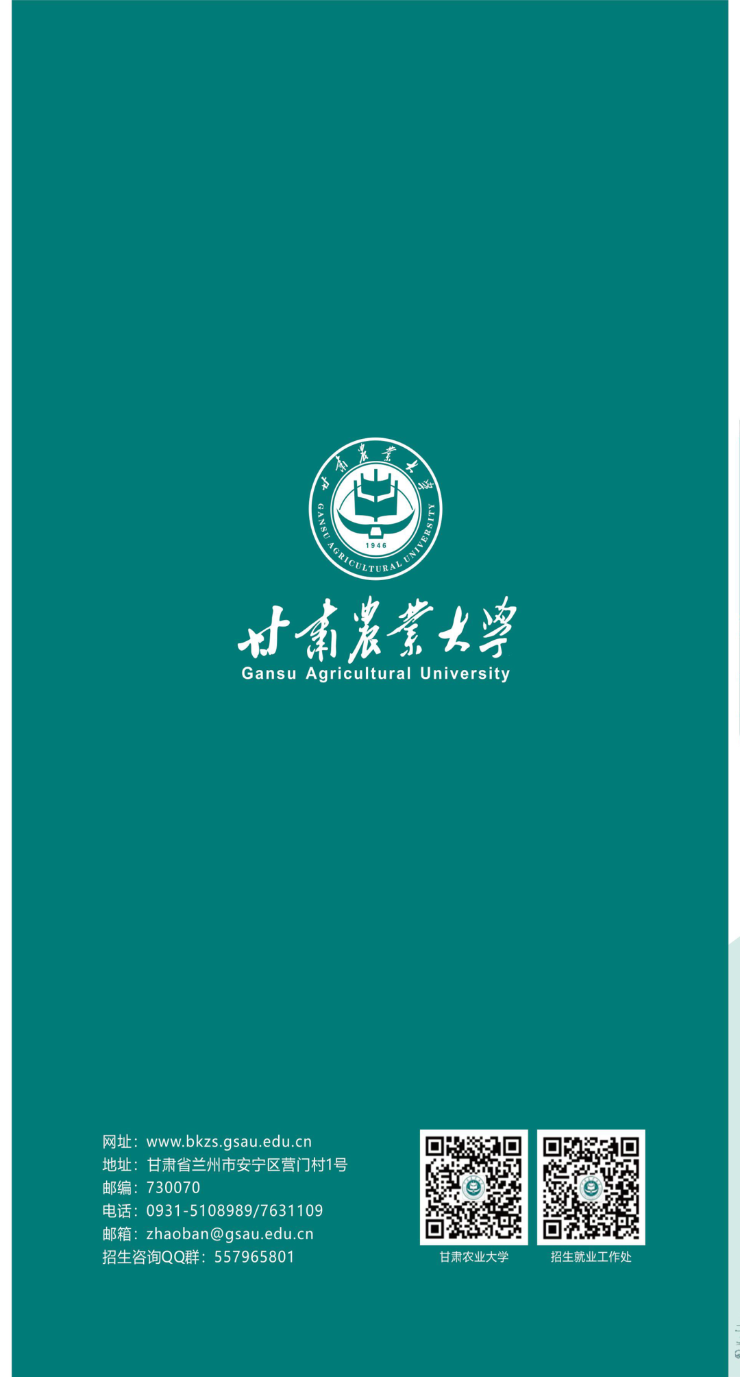 第一章 总则第一条为保证学校本科生招生工作顺利进行,维护学校和考生合法权益,根据《中华人民共和国教育法》、《中华人民共和国高等教育法》和教育部、甘肃省高等学校招生委员会、甘肃省教育厅有关高考招生录取工作的相关规定,结合我校实际情况,特制订本章程。第二条学校全称为甘肃农业大学,是公办全日制普通高等学校,部标代码为10733,上级主管部门为甘肃省教育厅。校本部地址为甘肃省兰州市安宁区营门村1号(普通高考本科生),邮编730070;应用技术学院地址为甘肃省定西市临洮县文峰北路9号(中职对口招生),邮编730500。第三条我校具有学士、硕士、博士学位授予权,前身为1946年10月创建于兰州的国立兽医学院,现为农业农村部和甘肃省人民政府共建大学、国家重点建设的中西部百所高校之一、甘肃省高水平大学。第二章 组织机构第四条甘肃农业大学设立招生委员会和年度本科招生工作领导小组,负责制定本科招生计划、招生政策和规则,讨论决定本科招生重大事宜。第五条招生办公室为学校招生委员会的常设工作机构,设在招生就业工作处,负责学校本科招生的日常工作。第六条我校本科生招生工作严格执行教育部的各项规定,在学校纪律监察部门的监督下开展工作。
