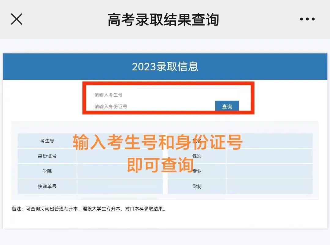 第三步:输入身份证号和考生号即可查询
