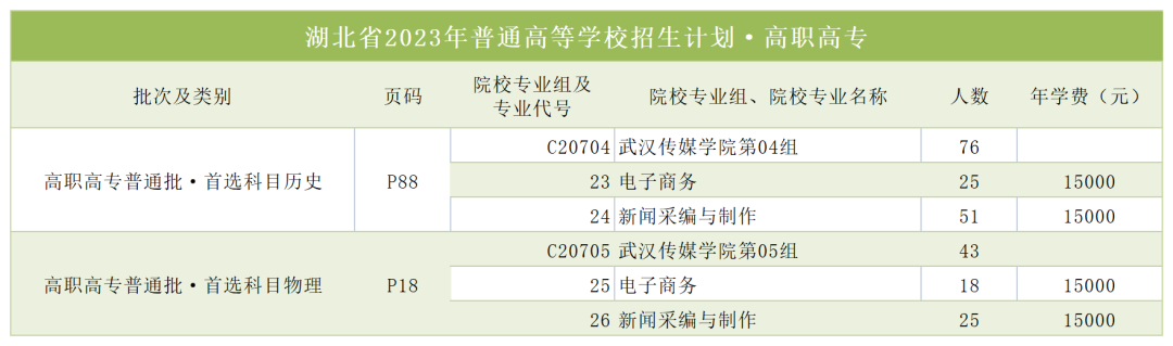 湖北省2023年普通高等学校招生计划·高职高专