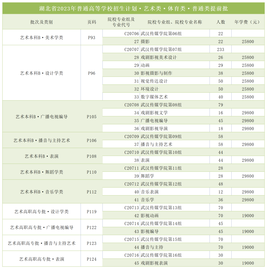 湖北省2023年普通高等学校招生计划·艺术类·