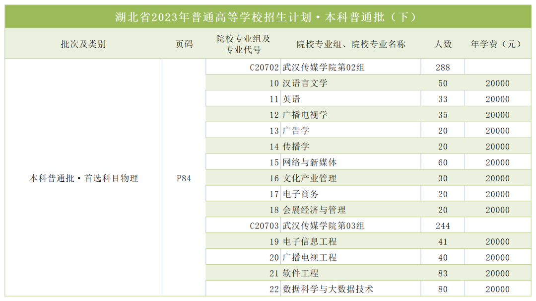湖北省2023年普通高等学校招生计划·本科普通批(下)