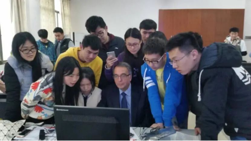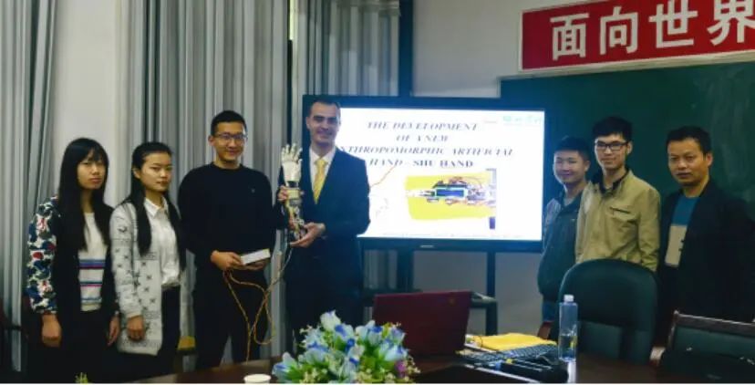 图二外籍教师Cosmin带领的学生实验创新团队成果汇报:智能拟人机械手