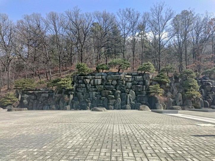 整个途中郁郁葱葱的松树随处可见,而且独具韩国特色。松树并不总是笔直地生长,常常歪斜、弯曲,这是由于韩国的土地质地坚硬,加上风又猛烈,松树不得不克服严峻的自然环境艰难而顽强地生存。这种坚强不屈的生存状态展示出庄严又壮丽的美,也映射出韩国人的民族性格和品质。