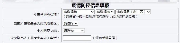 注意:今年新增了疫情防控信息填报这一步骤,如下图,考生需要按照自己的实际情况填报。