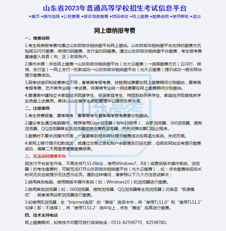 网上缴费期间,如有技术问题可拨打咨询电话:0531-82598770、82598780。