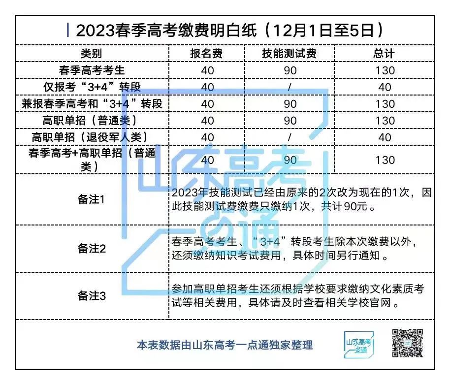 3.因考试组织和收费单位不同,春季高考报考费、技能