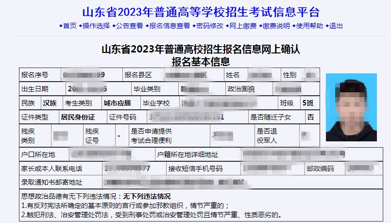 2.若有错误,请及时到报名县(市、区)招生考试机构申请修改。
