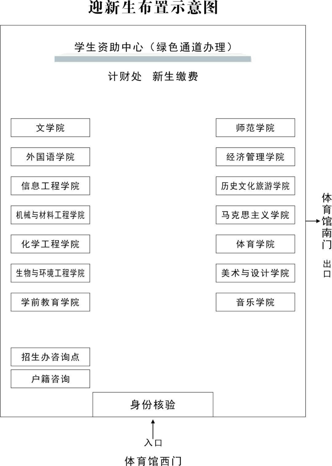新生入校,可先到公寓办理入住手续放置行李物品,再前往体育馆核验身份,办理注册及缴费手续,新生本着自愿原则可以到六号公寓南购买床上用品,在石榴花广场办理大学生商业
