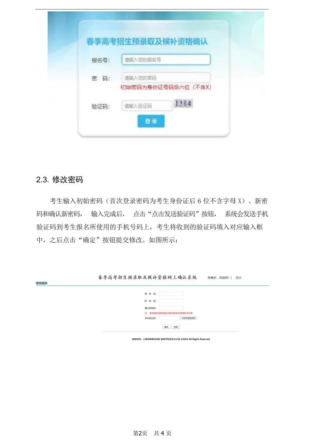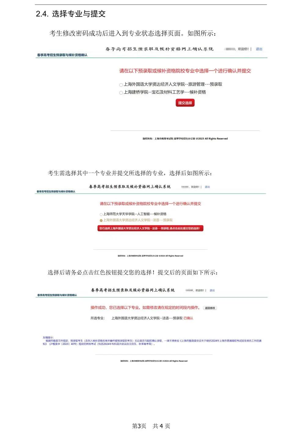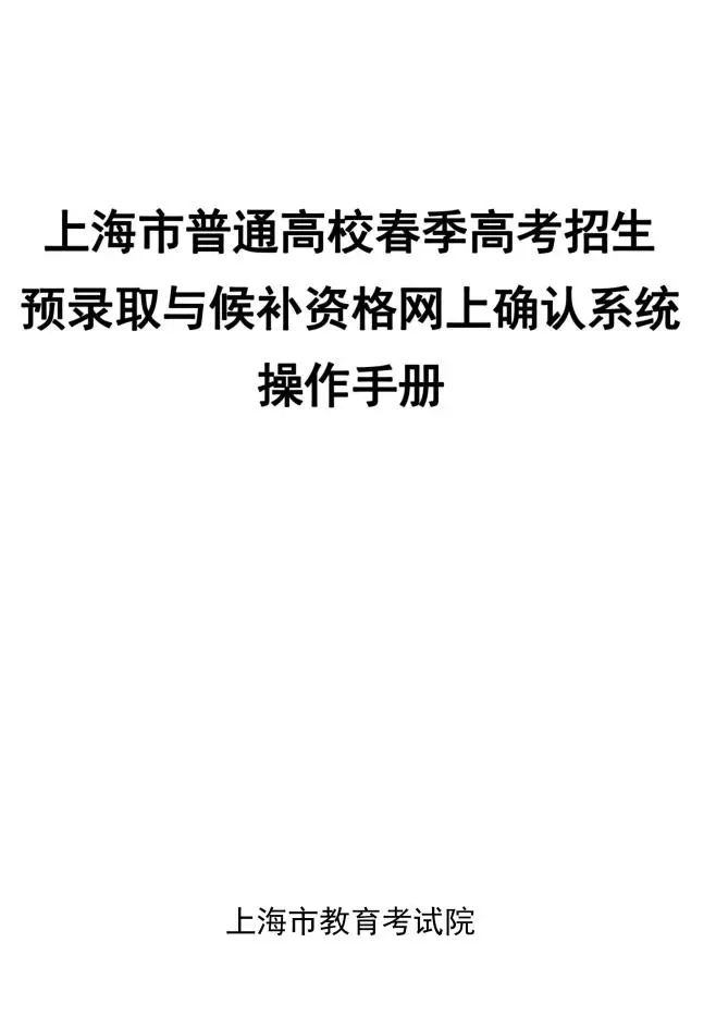 2. 打开网上确认系统后,根据系统内“上海市普通高校春季高考招生预录取与候补资格网上确认系统操作手册”具体指导步骤,进行网上确认。