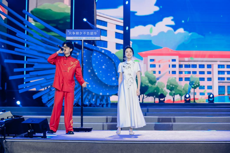在新时代优秀歌曲推介人李小萌的推介下,歌手吴若淇和叶人诵携我院原创歌曲《送别》出场,为全国观众展现了行知青年的青春与活力,与