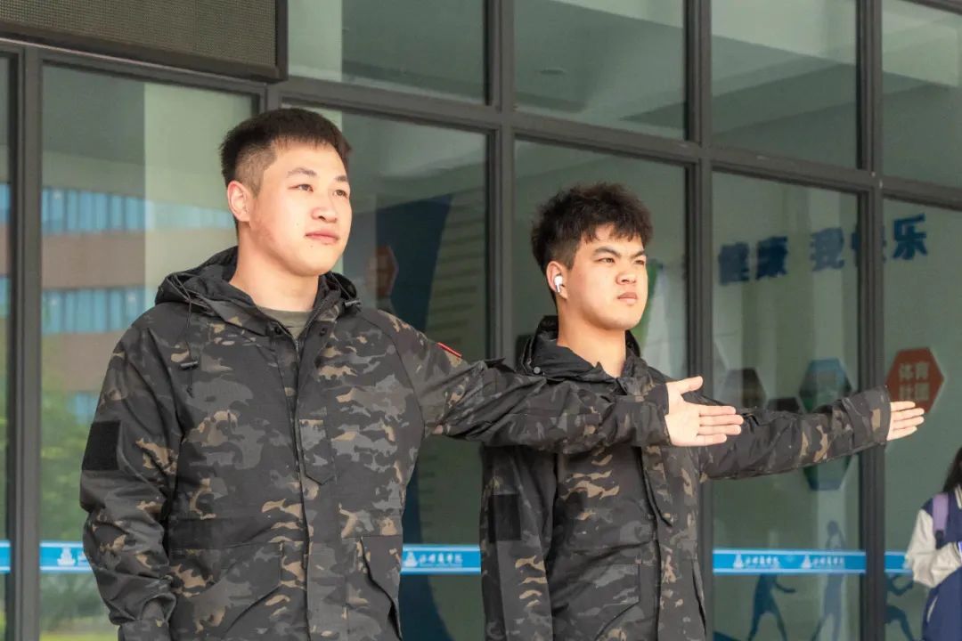 六个小时的站岗,没有一句怨言,昂首挺胸的姿态就是最好的答案,来自校国防青年先锋营的志愿者说:“我们的形象和姿态随时为学校的活动而准备,昂扬的精神面貌是我们为考生提供的最好礼物。”