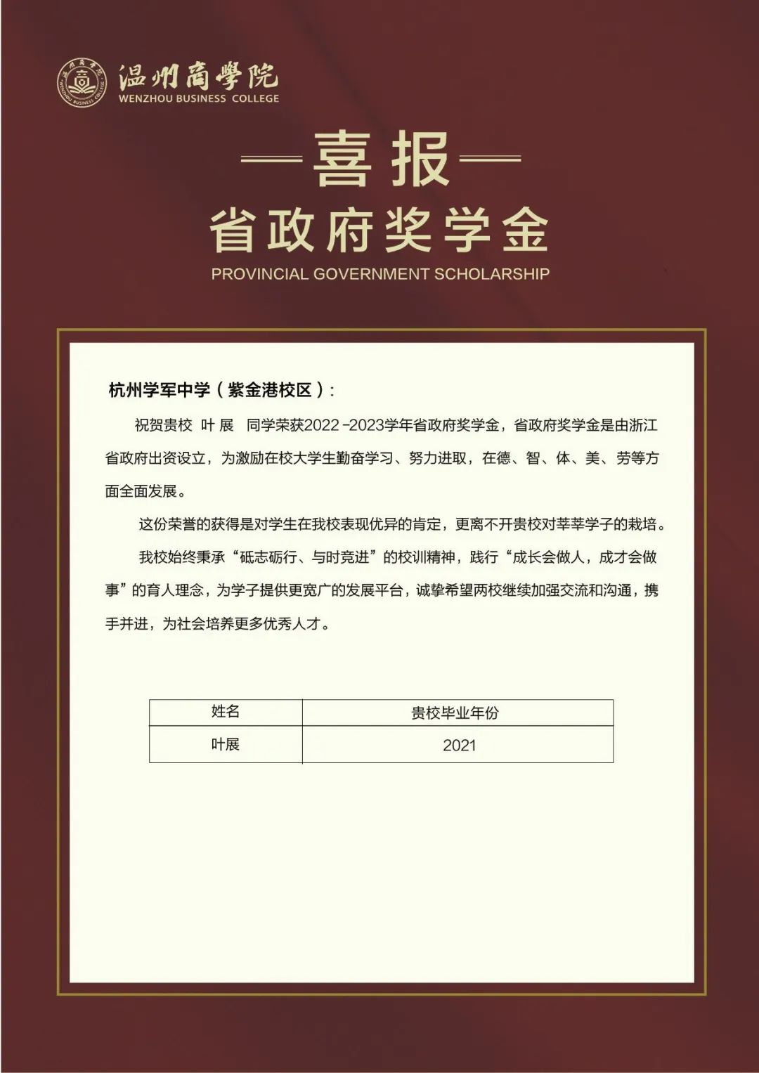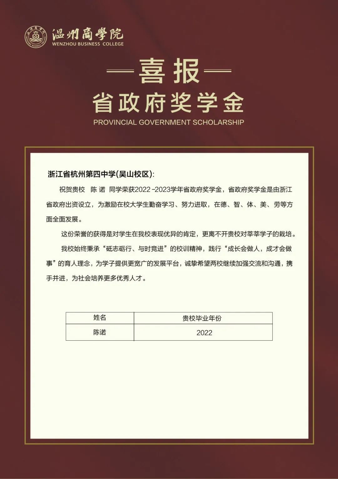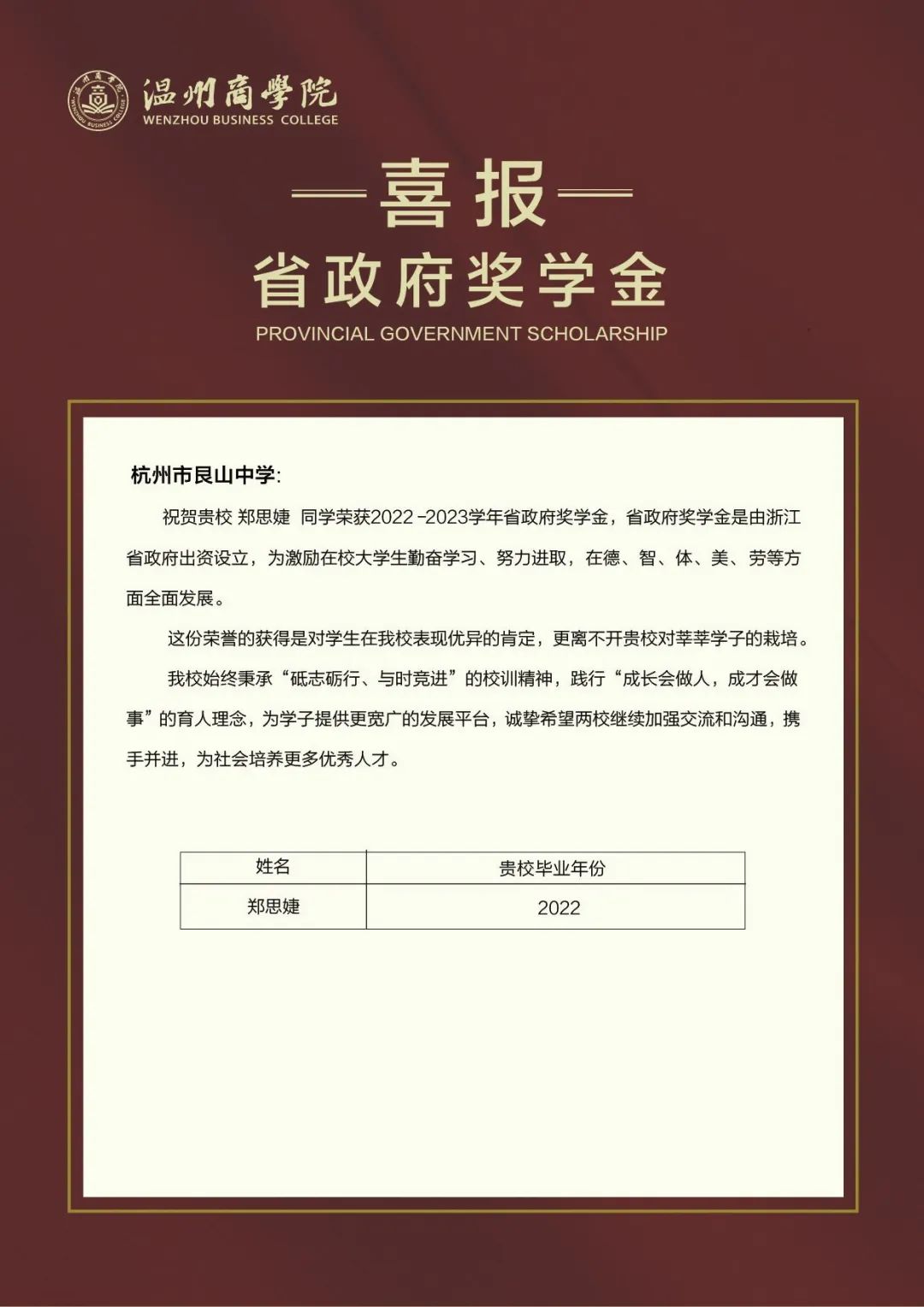 浙江省政府奖学金是浙江省政府设立的为了奖励优秀学生的奖学金,激励普通高校学生锐意进取,并在德、智、体、美、劳等方面全面发展。