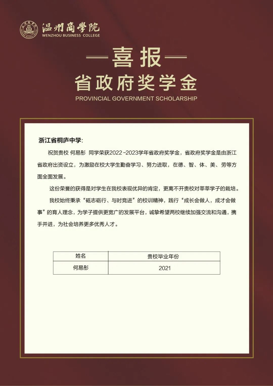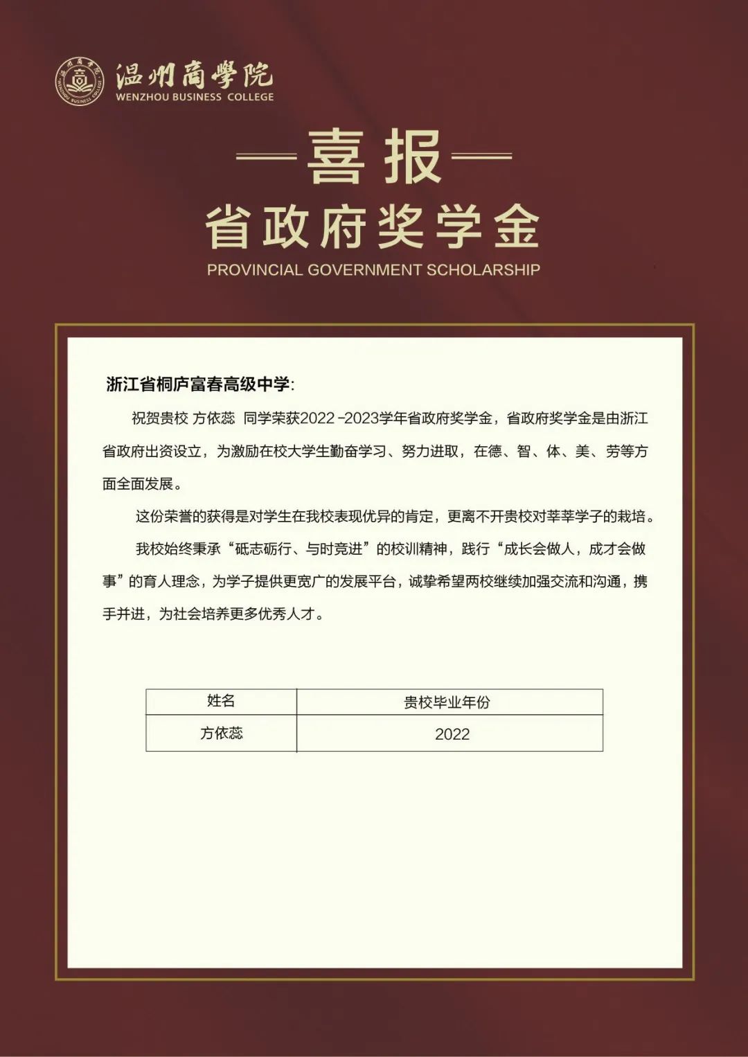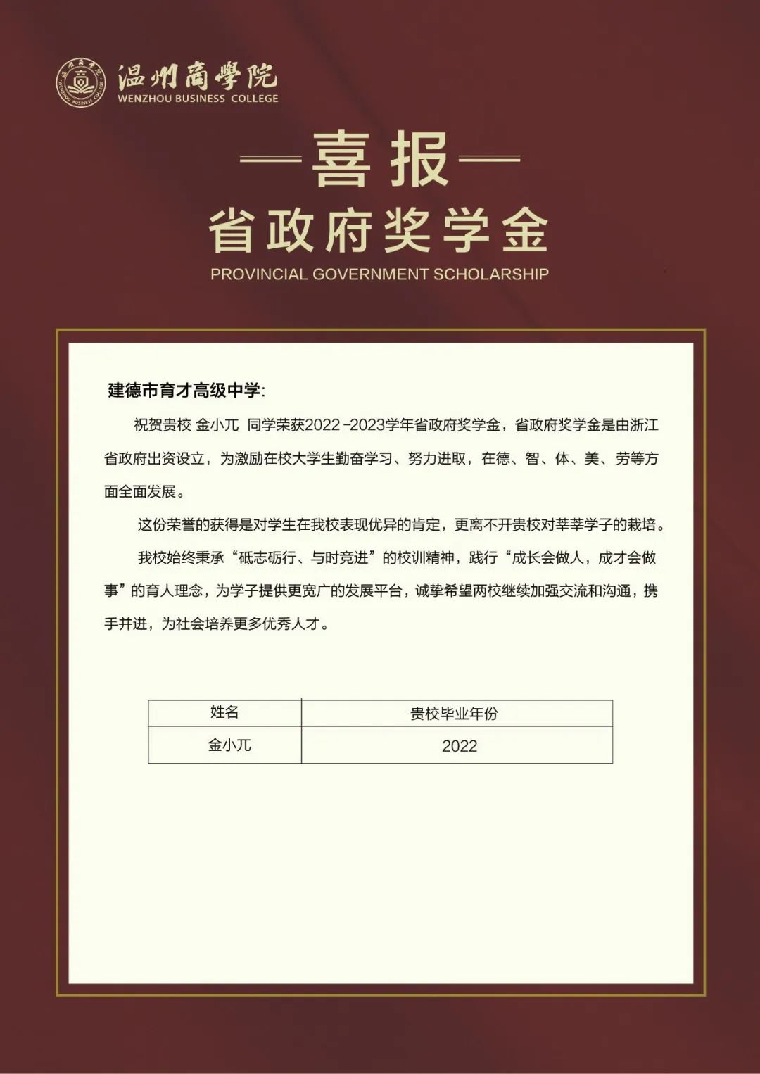 浙江省政府奖学金是浙江省政府设立的为了奖励优秀学生的奖学金,激励普通高校学生锐意进取,并在德、智、体、美、劳等方面全面发展。