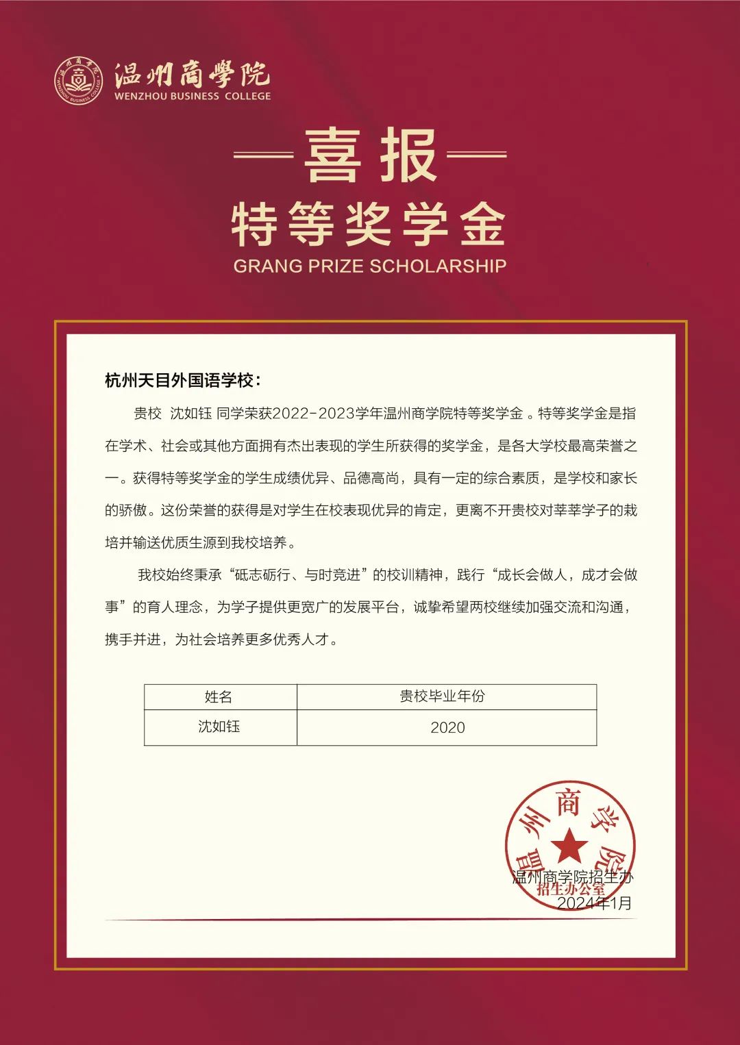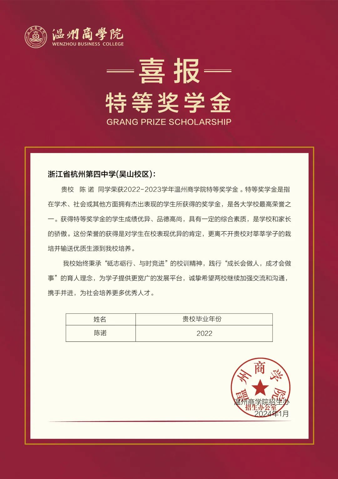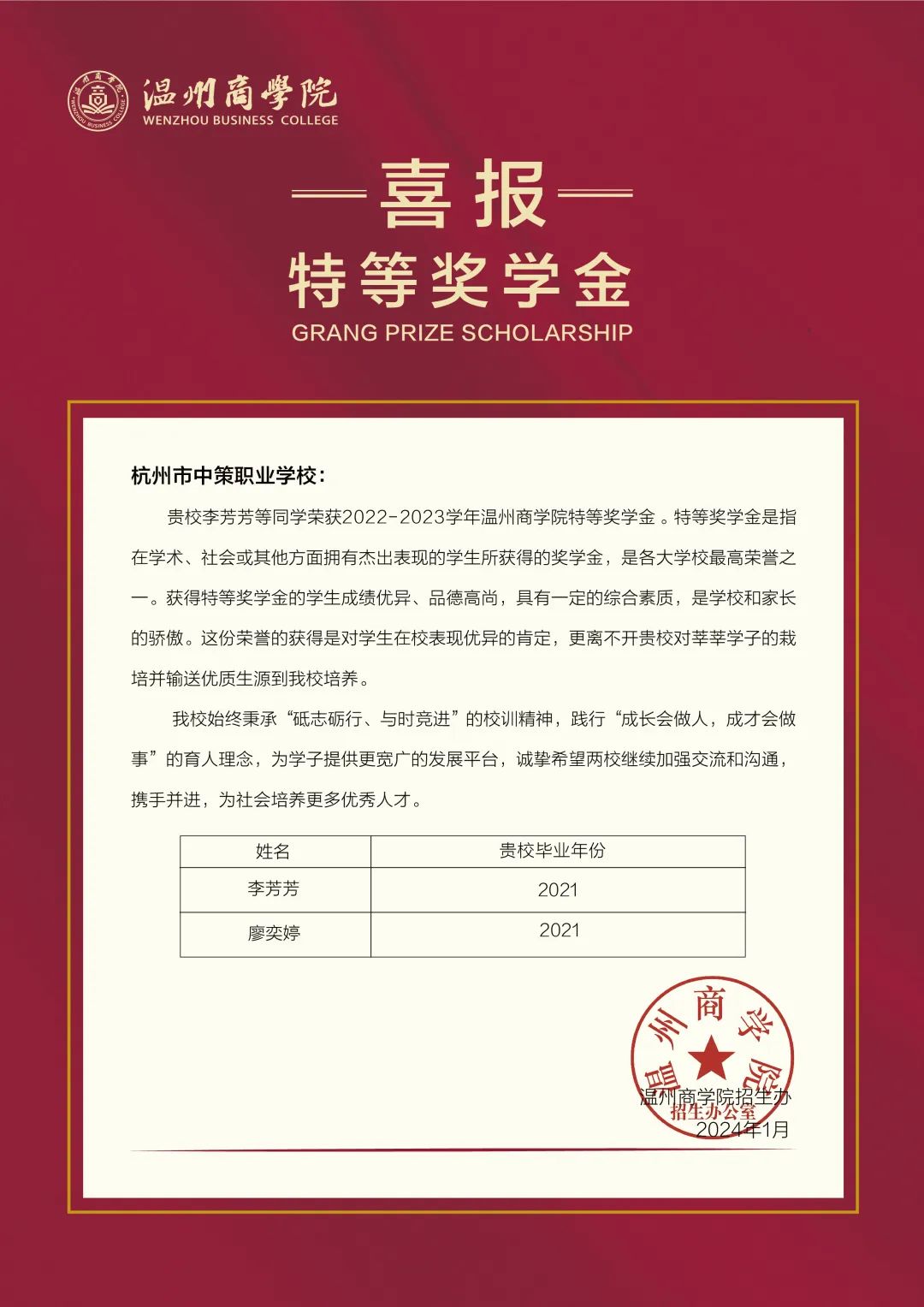 在此向贵校优秀学子表示热烈的祝贺,对贵