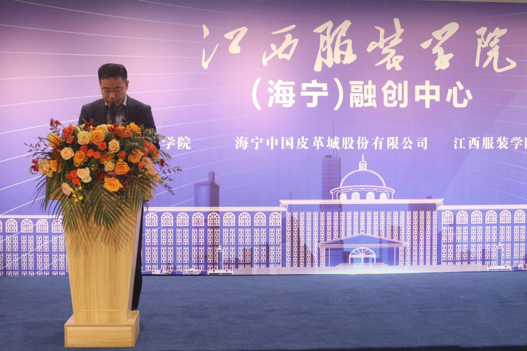 江西服装学院校长助理马国照致开场辞,介绍了我校三院制人才培养方式,表示学校对海宁融创中心寄予厚望,希望海宁融创中心能够成为众创人才服务的平台、产业校友资源的平台、企业人才培训的平台和创新成果转化的平台,借助海宁形成时尚产业资源优势,提升我校应用型人才培养质量,不断提升我校社会服务能力,为促进海宁时尚产业集群高质量发展贡献力量。共同成就梦想、织就辉煌。