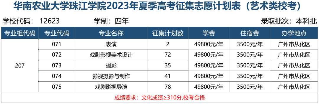 艺术类校考:文化科总分310分。