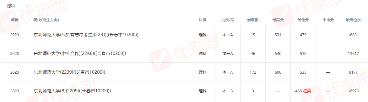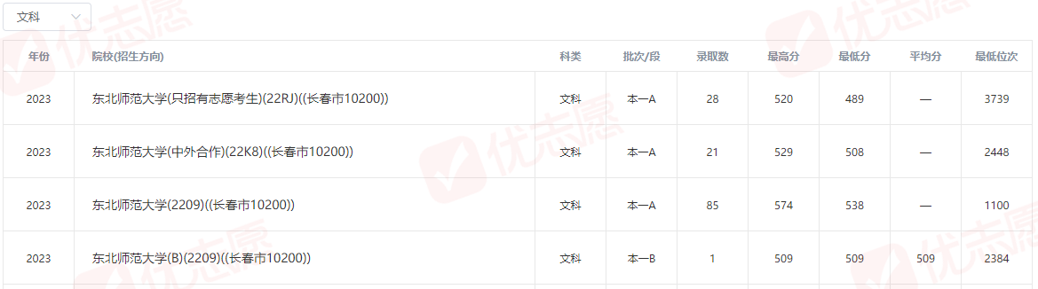 2023年东北师范大学在吉林省录取分数线: