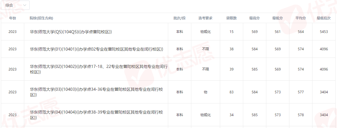 2023年华东师范大学在上海市录取分数线: